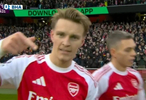 這位挪威中場上一次為阿森納在正式比賽中進球是上賽季英超第38輪對陣南安普頓。
