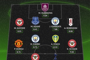 后衛(wèi):卡約德(布倫特福德,8.01分)、基恩(埃弗頓,8.41分)、格瓦迪奧爾(曼城,7.88分)、羅賓遜(富勒姆,8.08分)