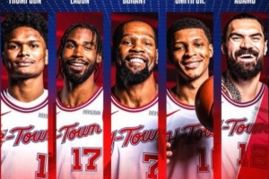 過(guò)去兩場(chǎng)?;鸺氖装l(fā)陣容是:阿門(mén)、伊森、杜蘭特、小賈、亞當(dāng)斯。