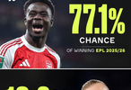 ??英超半程結(jié)束后,Opta更新英超奪冠概率: