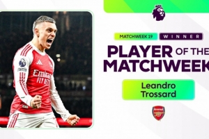 體育資訊1月3日訊 英超官方宣布,阿森納球員特羅薩德當(dāng)選第19輪最佳球員。