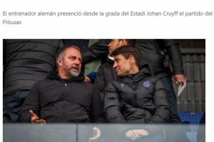 體育資訊1月4日訊 西班牙《每日體育報》報道,當(dāng)?shù)貢r間周日,巴薩主帥弗里克趁著一線隊休假的空檔與巴薩體育副主管博揚一同前往約翰·克魯伊夫球場,現(xiàn)場觀看了西協(xié)乙巴薩競技隊(巴薩B隊)4-0大勝伊比薩島的比賽。