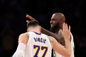 今日湖人球員東契奇(36分)、詹姆斯(26分)、拉拉維亞(26分)連續(xù)第二場比賽同場砍下20+。