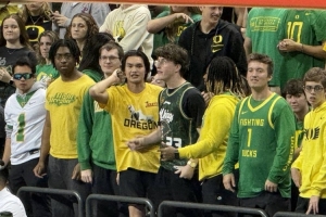 今日俄勒岡大學以67-63戰(zhàn)勝萊斯大學,取得開季兩連勝,小吧來到現(xiàn)場觀戰(zhàn),看到現(xiàn)場有很多林葳的球迷,一個外國人還穿著同曦球衣。