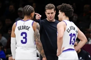 上賽季,爵士隊(duì)主教練威爾-哈迪很不滿意喬治在場(chǎng)上的競(jìng)技狀態(tài),防守端夢(mèng)游,還總是因?yàn)榫癫患谐霈F(xiàn)低級(jí)失誤。哈迪一度忍無可忍,把他摁在了替補(bǔ)席。