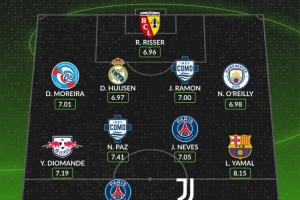 前鋒:杜埃(巴黎圣日耳曼,7.45分)、伊爾迪茲(尤文圖斯,7.16分)