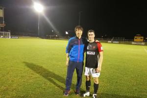 李鐵與謝菲聯(lián)老隊友尼克-蒙哥馬利相逢,當(dāng)時蒙哥馬利還未退役,效力的正是武漢卓爾熱身賽對手臥龍崗狼隊。