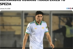 體育資訊1月17日訊 羅馬官方宣布,青訓(xùn)中場球員亞利桑德羅·羅馬諾被租借到意乙球隊(duì)斯佩齊亞。