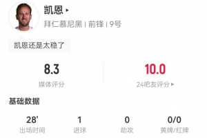 體育資訊1月29日訊 拜仁在本輪歐冠2-1力克埃因霍溫,凱恩本場(chǎng)數(shù)據(jù)如下: