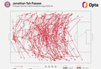 根據OPTA的數據統(tǒng)計,拜仁慕尼黑的中后衛(wèi)喬納森·塔在2025-26賽季歐冠聯(lián)賽階段的傳球準確率是所有球員中最高的,達到了驚人的97%。