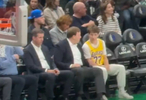 今天現(xiàn)場有一位穿著東契奇湖人球衣的球迷,坐在獨行俠老板老板杜蒙特的身邊,兩人進行了交流。