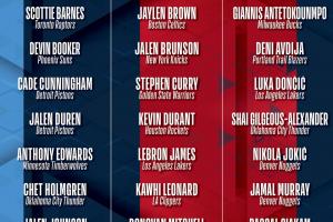 星條隊:杰倫·布朗、布倫森、庫里、杜蘭特、詹姆斯、倫納德、米切爾、鮑威爾