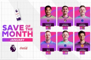 體育資訊2月5日訊 英超官方公布1月聯(lián)賽最佳撲救候選,拉門(mén)斯撲蘇維門(mén)迪頭球在列,皮克福德兩記撲救入圍。