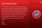 昨晚賽事的官方報(bào)告正處于審核階段。如發(fā)現(xiàn)違規(guī)問題,將啟動(dòng)相關(guān)程序;若最終作出紀(jì)律處罰,相關(guān)結(jié)果將在歐足聯(lián)紀(jì)律委員會(huì)官網(wǎng)公布。目前,我們暫不提供更多信息,也不就此事發(fā)表進(jìn)一步評(píng)論。