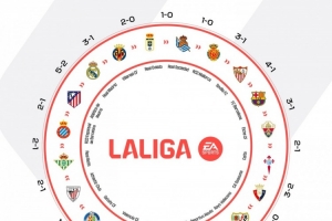 體育資訊11月13日訊 西甲官方更新社媒動態(tài),曬出本賽季各隊勝負閉環(huán)圖片。