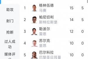 下一篇: 加盟后前2季法甲均進(jìn)球15+,格林伍德是馬賽近77年首人