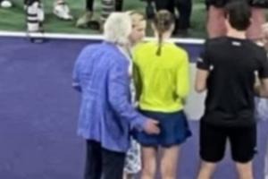 體育資訊03月08日訊 印第安維爾斯混雙表演賽(艾森豪威爾杯),衛(wèi)冕冠軍萊巴金娜/弗里茨以10-7戰(zhàn)勝阿尼西莫娃/勒納錢,奪得冠軍。頒獎環(huán)節(jié),萊巴金娜疑似遭頒獎嘉賓咸豬手,引發(fā)網(wǎng)友熱議。