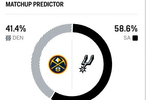 ESPN預(yù)測本場比賽勝率:馬刺58.6%,掘金41.4%。