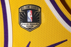 據(jù)NBA官推曬出的更衣室現(xiàn)場照,詹姆斯本場比賽的球衣上將附帶紀念其歷史進球數(shù)紀錄的特制補丁。