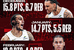 去年12月到今年3月得分和籃板數(shù)據(jù)