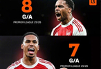 第二位和第三位分別是阿森納的加布里埃爾(7次)和切爾西的里斯-詹姆斯(6次)。