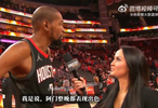 NBA常規(guī)賽,火箭107-105擊敗鵜鶘。賽后杜蘭特接受記者瓦妮莎的場邊采訪。