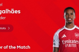本場比賽加布里埃爾首發(fā)出場發(fā)揮穩(wěn)健,貢獻(xiàn)8次解圍,賽后當(dāng)選英超官方評選出的本場比賽最佳球員。