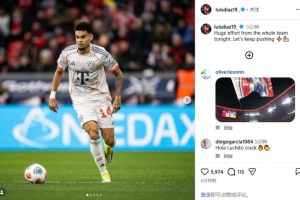 體育資訊3月15日訊 德甲第26輪,拜仁1-1戰(zhàn)平勒沃庫(kù)森。賽后,拜仁邊鋒路易斯·迪亞斯在社交媒體發(fā)文,鼓勵(lì)球隊(duì)。