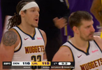 9.2秒,湖人落后1分,掘金暫停,需要一次防守打個反擊,湖人沒暫停了