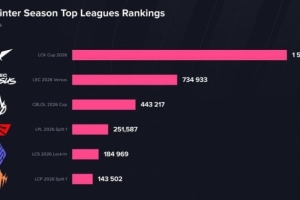 體育資訊3月15日訊 根據(jù)Esports Charts數(shù)據(jù)統(tǒng)計(jì),LCK海外收視達(dá)150萬(wàn)人,超LPL海外6倍!