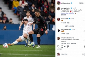 拜仁中場帕夫洛維奇社媒曬出比賽照片,配文:“為這支球隊感到驕傲,感謝你們的支持,烏爾賴希表現(xiàn)太棒了?!?/p>