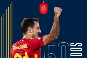 體育資訊11月16日訊 世預(yù)賽歐洲區(qū)小組賽E組第5輪,西班牙對(duì)陣格魯吉亞,奧亞薩瓦爾此役代表西班牙首發(fā)登場(chǎng),這名28歲的前鋒在此役迎來(lái)國(guó)家隊(duì)第50場(chǎng)比賽。