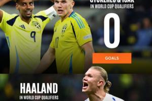 體育資訊11月18日訊 歐洲區(qū)世預(yù)賽已經(jīng)接近尾聲,哈蘭德率領(lǐng)的挪威8戰(zhàn)全勝挺進(jìn)世界杯,他本人更是8場16球領(lǐng)跑射手榜,與另一支擁有豪華鋒線的球隊(duì)瑞典形成了鮮明反差。