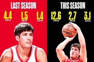 上賽季謝潑德場均4.4分1.5籃板1.4助攻0.7搶斷,三項(xiàng)命中率35.1/33.8/81.3%。