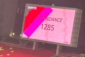 根據(jù)現(xiàn)場大屏幕顯示,有1285人在漢口文體中心現(xiàn)場觀看武漢車谷江大女足的比賽。