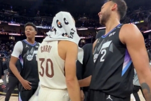 GIF-李凱爾賽后與庫(kù)里追夢(mèng)小佩頓擁抱互動(dòng)