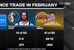 在大交易之后,濃眉52場比賽只打了14場——8勝6負;東契奇則是52場出戰(zhàn)41場,戰(zhàn)績是28勝13負!