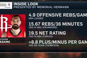 火箭主場迎戰(zhàn)國王,轉播方曬出亞當斯數(shù)據(jù):