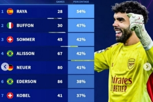 體育資訊12月11日訊 德轉(zhuǎn)盤(pán)點(diǎn)了近10年歐冠門(mén)將零封場(chǎng)次占比排行榜(至少25次出場(chǎng)),其中拉亞54%的比賽能夠零封居首,具體如下(比賽場(chǎng)次+零封比例):