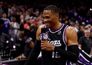 據統(tǒng)計,本賽季威少出任首發(fā)的比賽,場均19.3分9.8板6.8助攻,場均進2.8記三分,三項命中率53/50/89%。