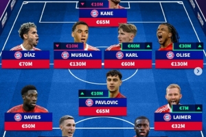 中場:路易斯·迪亞斯(拜仁慕尼黑,7000萬)、賈馬爾·穆西亞拉(拜仁慕尼黑,1.3億)、亞歷山大·帕夫洛維奇(拜仁慕尼黑,6500萬)、倫納特·卡爾(拜仁慕尼黑,6000萬)、邁克爾·奧利塞(拜仁慕尼黑,1.3億)