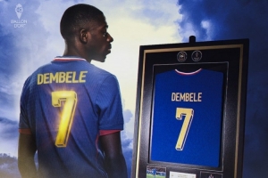 體育資訊12月20日訊 據(jù)法國(guó)足協(xié)官方在線商店顯示,為慶祝登貝萊榮獲2025年金球獎(jiǎng),官方推出了一款極其珍貴的聯(lián)名收藏品,帶有獨(dú)家金色印字的登貝萊裝裱球衣。