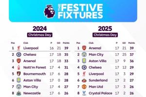 體育資訊12月25日訊 西方傳統(tǒng)節(jié)日圣誕節(jié)之際,英超官方曬圖對(duì)本賽季和上賽季的節(jié)禮日積分榜進(jìn)行了對(duì)比。
